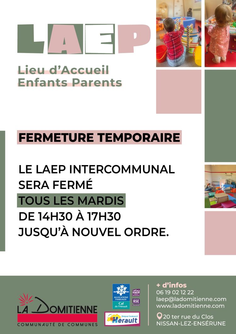 Le Lieu Accueil Enfants Parents sera fermé tous les mardis de 14H30 à 17H30 jusqu’à nouvel ordre.