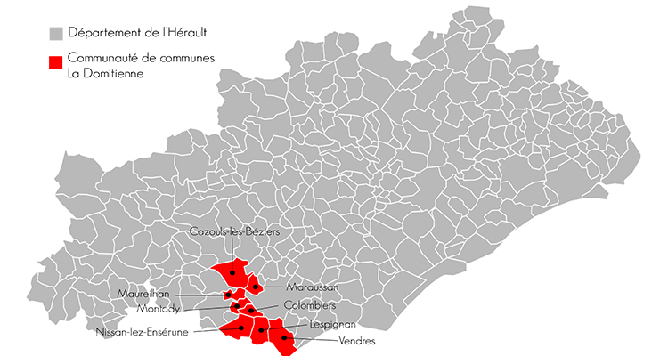 Regroupant à sa naissance, les villages de Cazouls-lès-Béziers, Colombiers, Maureilhan, Montady et Nissan-Lez-Ensérune, La Domitienne continua sa quête et trois ans plus tard, les communes de Lespignan, Vendres et Maraussan rejoignent la communauté.